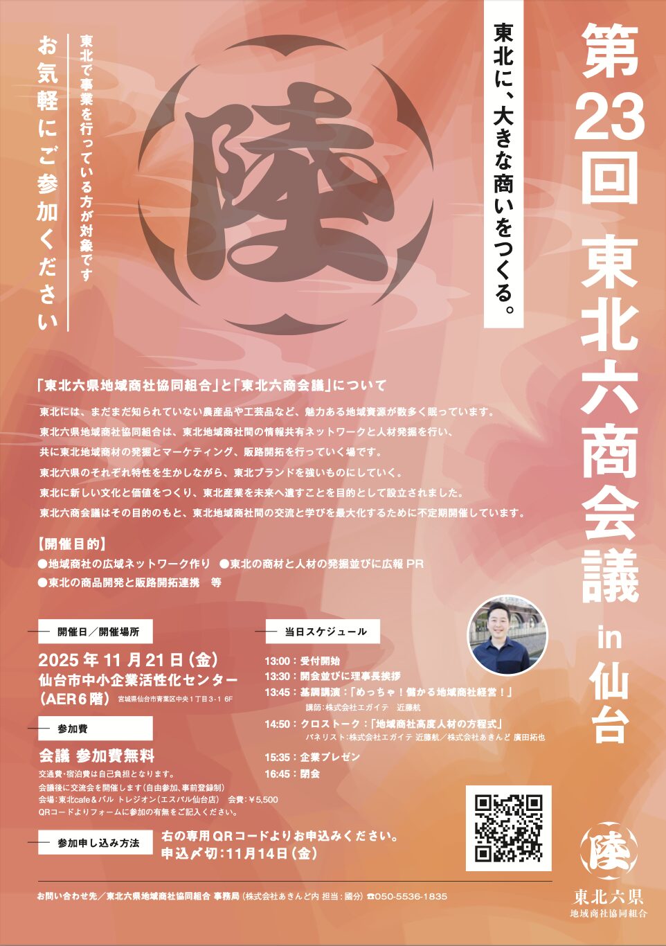 東北六県地域商社協同組合は、東北地域商社間の情報共有ネットワークと人材発掘を行い、共に東北地域商材の発掘とマーケティング、販路開拓を行っていく場です。